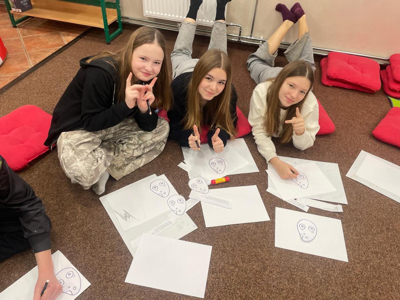 Pod vedením paní knihovnice se ponořili do světa příběhů vyprávěných pomocí obrázkových karet a dřevěného rámu – a sami si vyzkoušeli, jak takové vyprávění vzniká. Ve skupinách vytvořili vlastní obrázkové karty na téma Líný brambor. Nechyběla fantazie, spolupráce ani originální nápady.