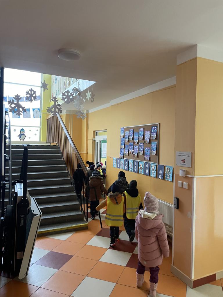 Děti si prohlédly učebny v plném provozu, vyzkoušely si pohybové aktivity v tělocvičně a na závěr je čekalo drobné pohoštění ve školní jídelně. Návštěva proběhla v příjemné atmosféře a byla pro děti i pedagogy milým setkáním.