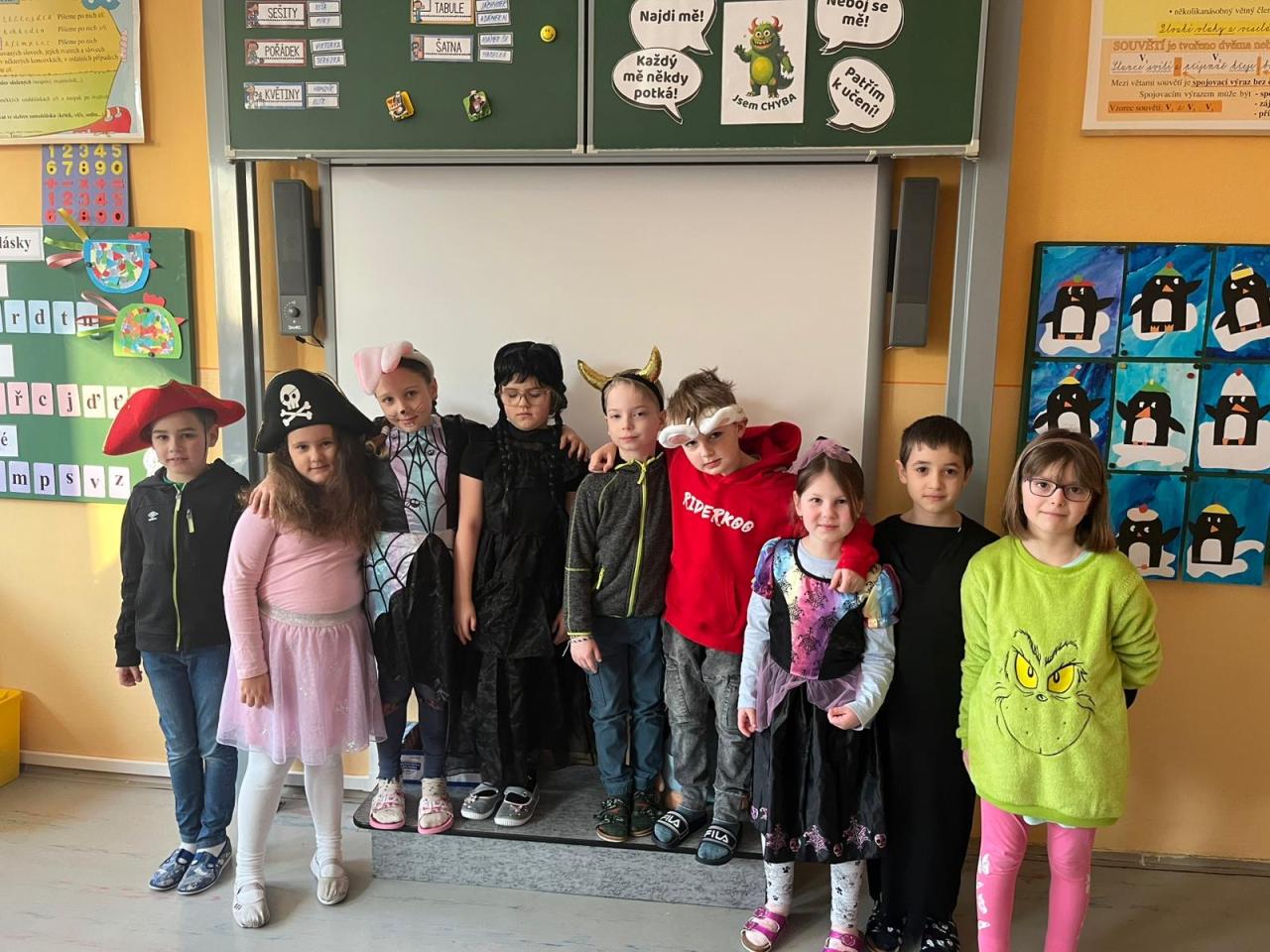 Mnozí žáci přišli v originálních a nápaditých kostýmech, přinesli si tematické dekorace a doplňky a celá škola se díky tomu proměnila v pestrou a veselou přehlídku sváteční atmosféry. Nechyběla dobrá nálada, kreativita ani spousta úsměvů.