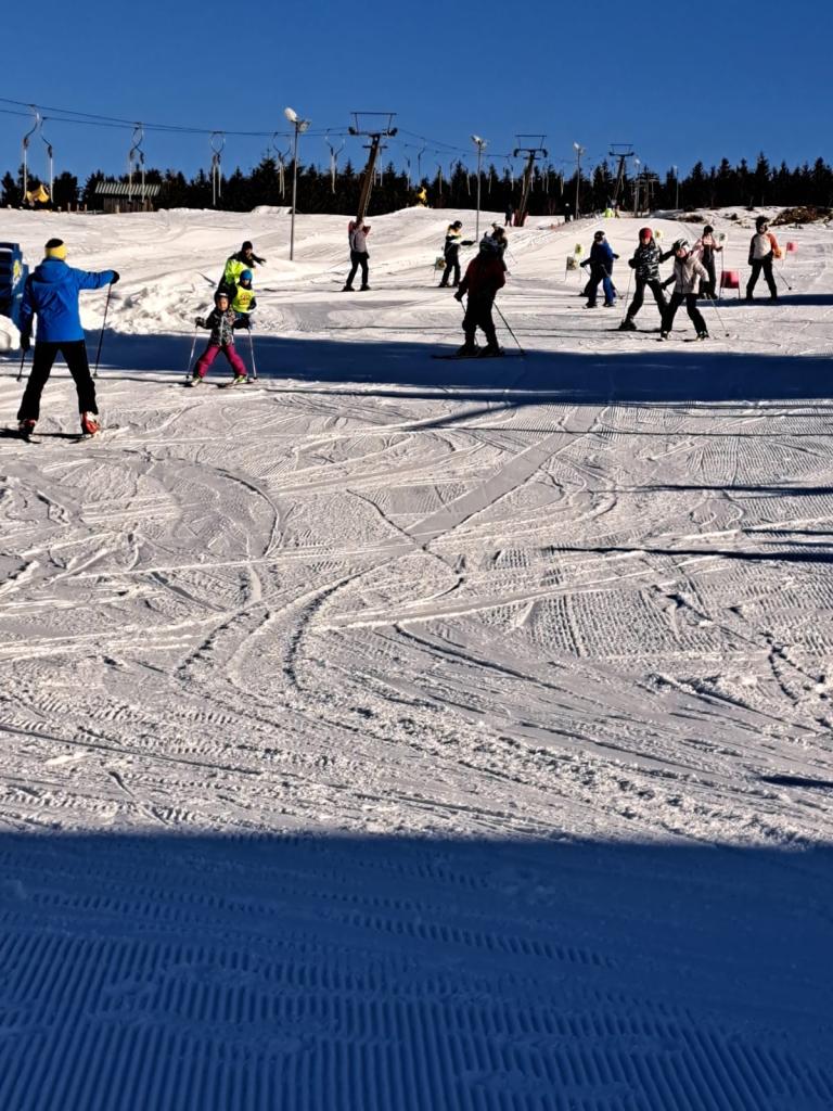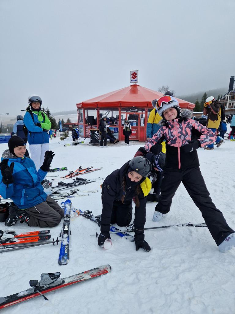 Od pondělí do pátku v týdnu od 3. do 7. února vybraní žáci z druhého stupně lyžovali ostošest. Výprava lyžařů si užívala sjezdovky Klínovce a Božího Daru.